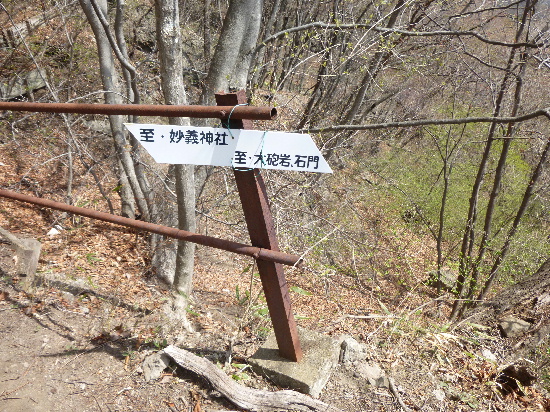 大砲岩前分岐道標